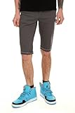 These denim shorts feature a charcoal grey wash and cuffed bottoms.