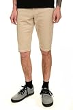 These denim shorts feature a khaki wash and cuffed bottoms.